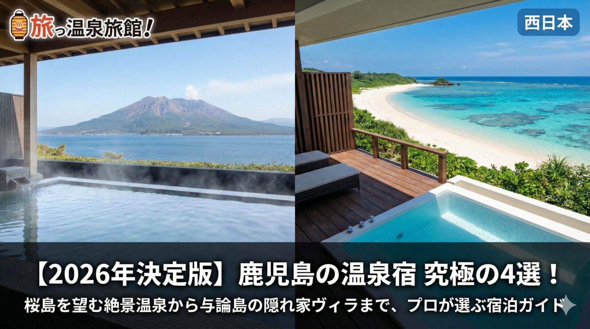 今回は、数ある鹿児島県の宿の中から、「桜島絶景」「砂むし温泉」「最新ラグジュアリー」「離島の隠れ家」という4つの視点で厳選した、鹿児島で絶対に泊まるべき究極の温泉宿・ホテル4軒をご紹介します。それぞれの宿の深掘り記事も合わせてチェックして、あなたの旅にぴったりの一軒を見つけてください。