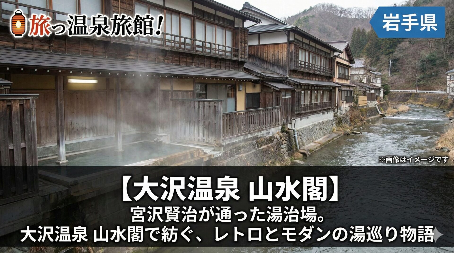 もし、あなたが「宮沢賢治も愛した歴史ある湯治場の雰囲気を味わいたいけれど、宿泊は快適な旅館で過ごしたい」と願うなら。そして、川沿いの絶景露天風呂で四季折々の景色を眺め、ノスタルジックな木造校舎のような建物を散策したいと願うなら。そんな、古き良き湯治文化と現代の快適さを一度に楽しめる宿が、花巻にあります。それが、「大沢温泉 山水閣(さんすいかく)」です。