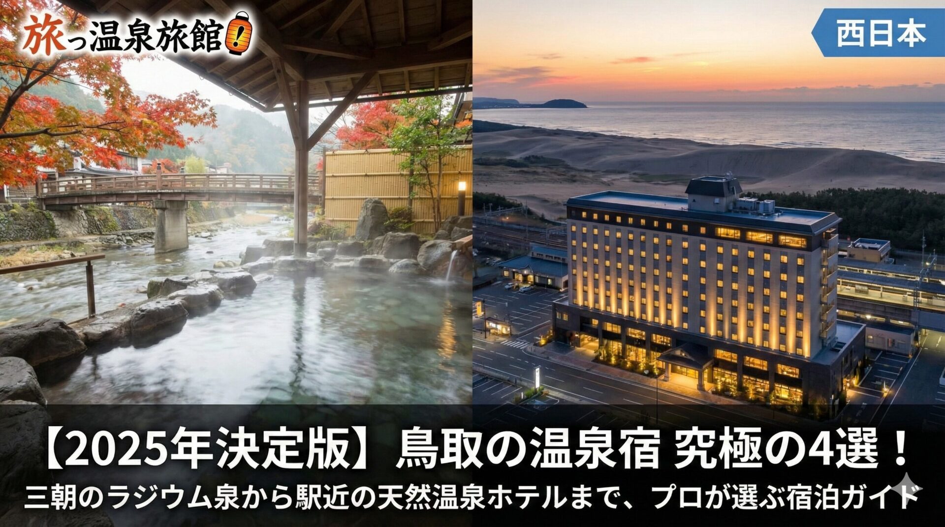 今回は、数ある鳥取県の温泉宿の中から、「湯治・効能」「絶景オーシャンビュー」「老舗の情緒」「利便性と温泉」という4つの視点で厳選した、鳥取で絶対に泊まるべき究極の温泉宿4軒をご紹介します。それぞれの宿の深掘り記事も合わせてチェックして、あなたの旅にぴったりの一軒を見つけてください。