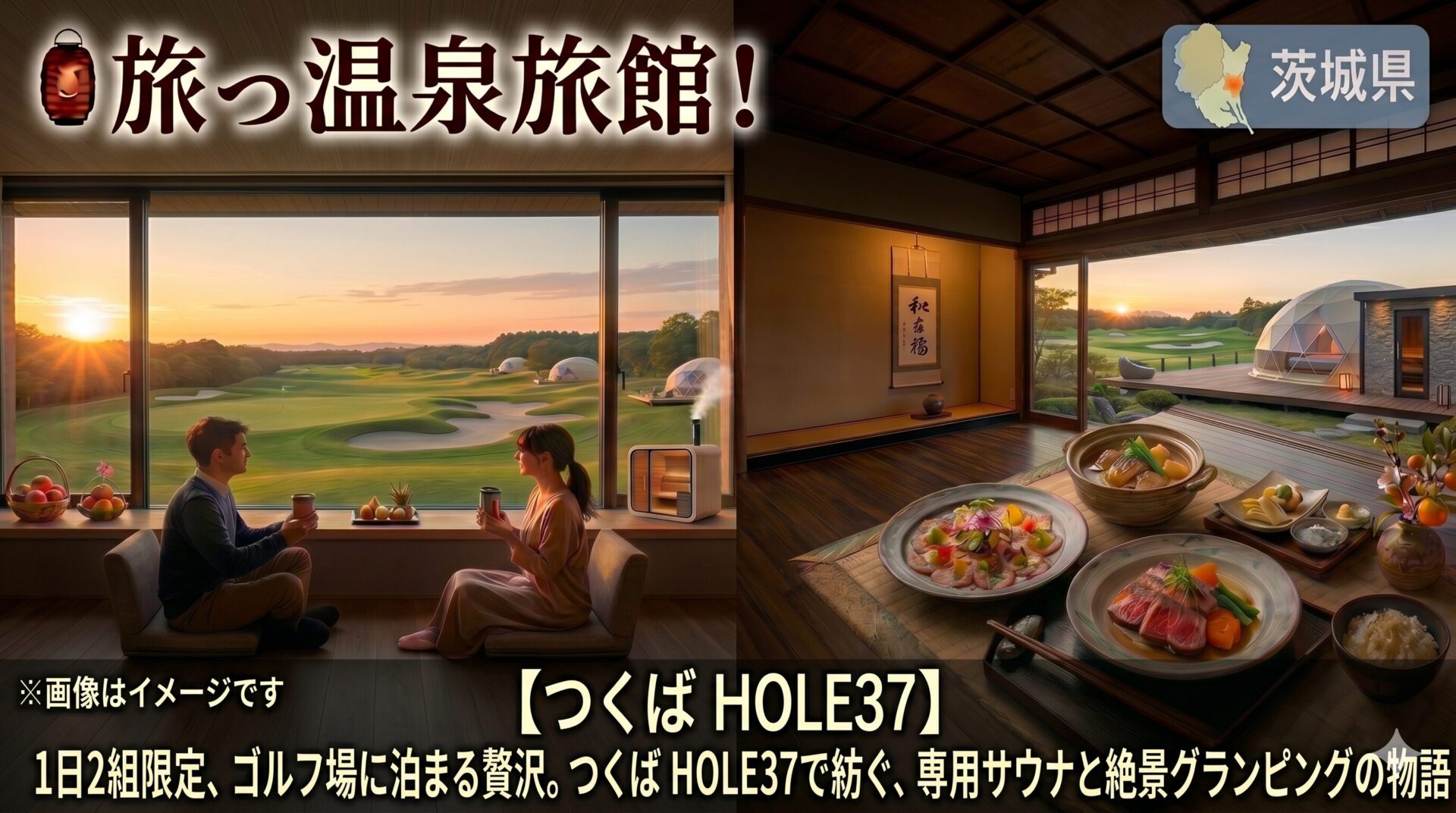 茨城県つくば市。常磐自動車道・三郷ICから車で約45分と、都心からのアクセスも良好なこの地に、雄大な自然を抱く「筑波国際カントリークラブ」があります。「HOLE37」は、そのゴルフ場内に併設された、1日2組限定のサウナ付きグランピング施設(コテージ)です。